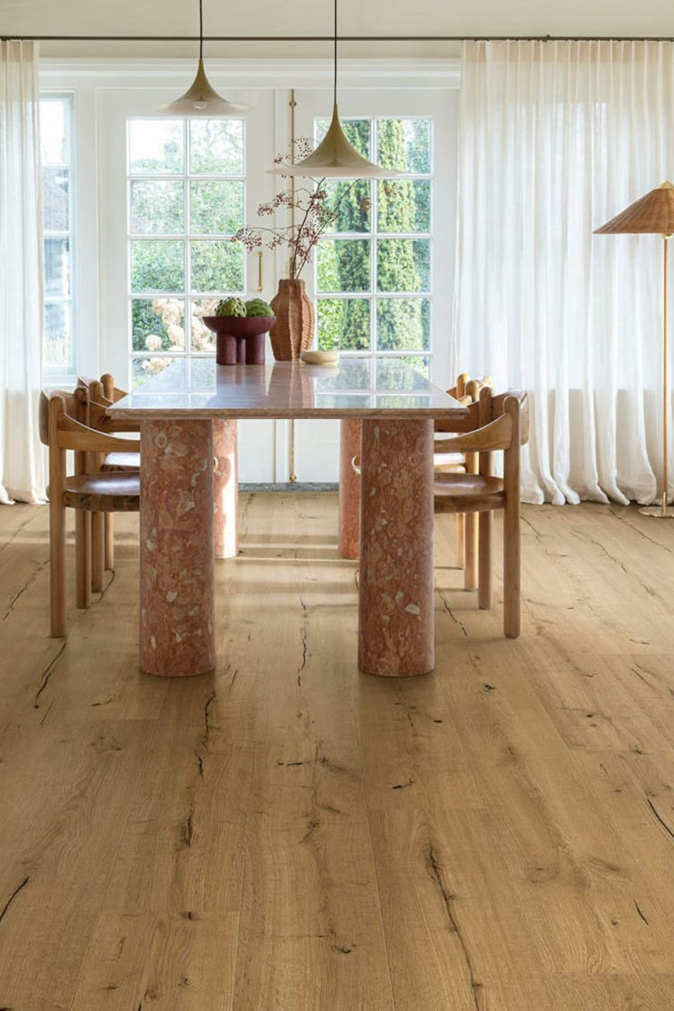 Sensy Floors hebben een Rawthentic 3D-geprinte geborstelde houtnerfstructuur met realistische knoesten en spleten. De stevige kernconstructie biedt uitzonderlijke stabiliteit en slagvastheid, terwijl de 0,55 mm dikke slijtlaag van klasse 33 bestand is tegen intensief gebruik. Water- en vlekbestendige oppervlakken maken ze perfect voor keukens en badkamers. Dankzij de klik-installatie is er geen lijm of speciaal gereedschap nodig en zijn ze geschikt voor vloerverwarming. Profiteer bovendien van onze lange garantie op wooncomfort en prestaties voor een gerust gevoel.